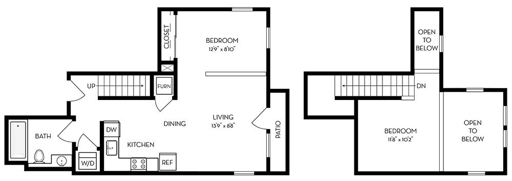1BR/2BA Loft w/ Den - Floorplan 1 Apartment Unit: 518Apartment Model: 1BR/2BA Loft w/ DenFrom $4,6122 Bedroom, 2 Bath, 890 sq ftAvailable March 20, 2026![]()