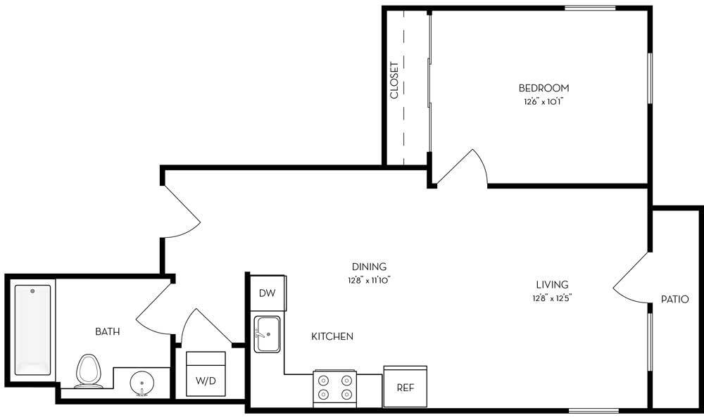 1BR/1BA Flat - Floorplan 3 Apartment Unit: 229Apartment Model: 1BR/1BA FlatFrom $3,2101 Bedroom, 1 Bath, 659 sq ftAvailable Now![]()