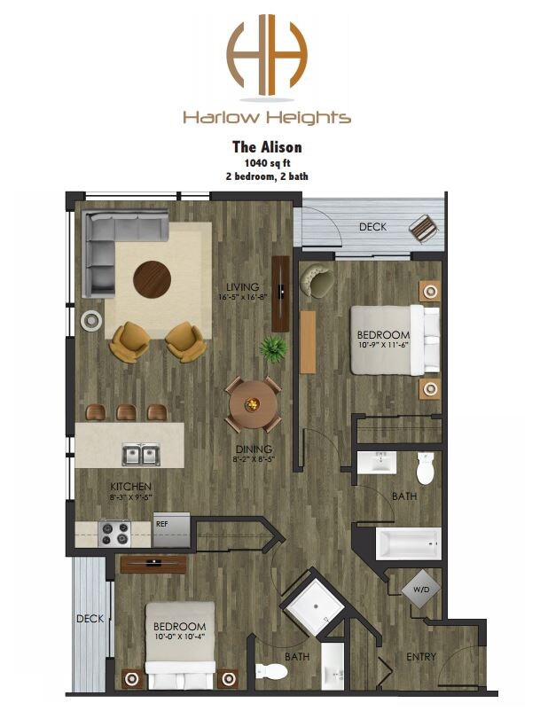 Apartment Model: The AlisonCall For Rates2 Bedroom, 2 Bath, 1040 sq ftUnavailableFloorplansPhotos![]()