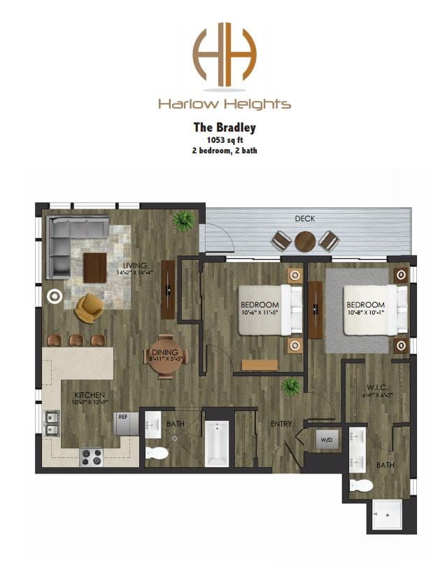 Harlow Heights offers Studio to 2 Bedroom apartments starting from $1,550 and having 342–1,047 sq ft. Here is the current pricing and availability: