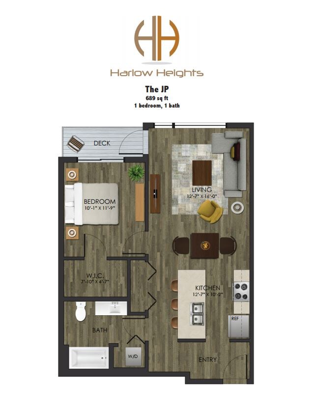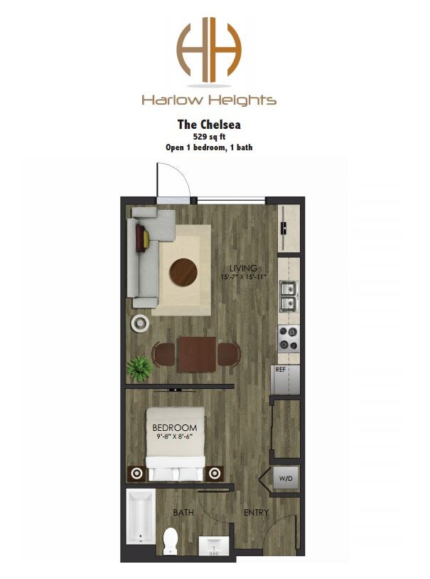 Studio to 2 Bedroom Apartments at Harlow Heights currently range from $1,550 to $1,725