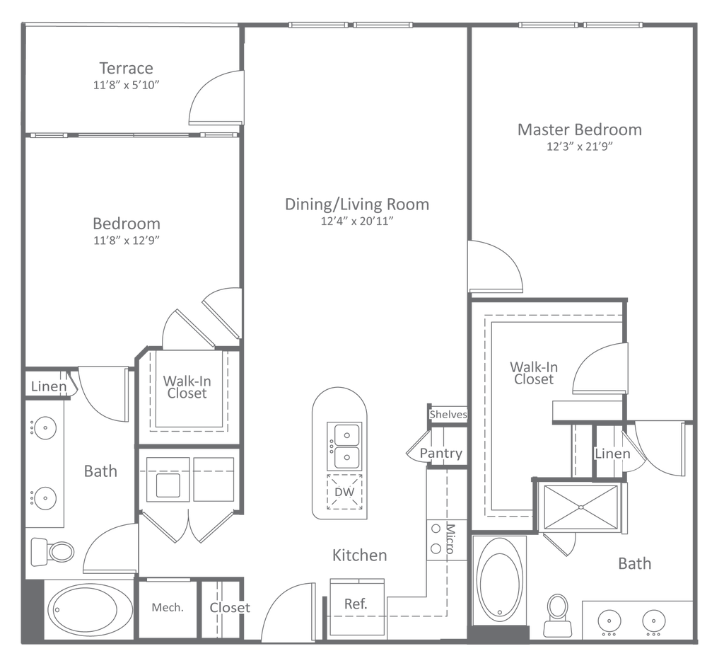 1 Bed, 1 Bath, 749-762 sq ftAvailable NowCheapest 1 BedroomThis is the cheapest 1 Bedroom at this PropertyModel Gallery