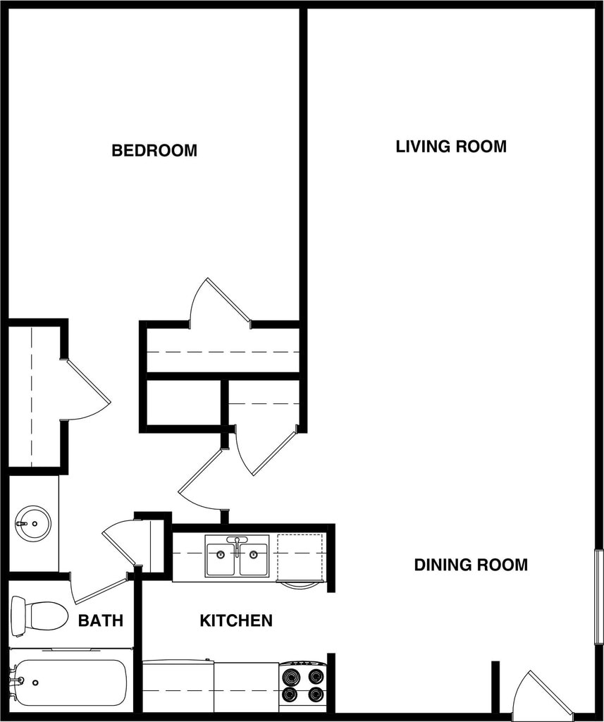 1 Bed, 1 bath - Floorplan 1 1 Bed, 1 bath