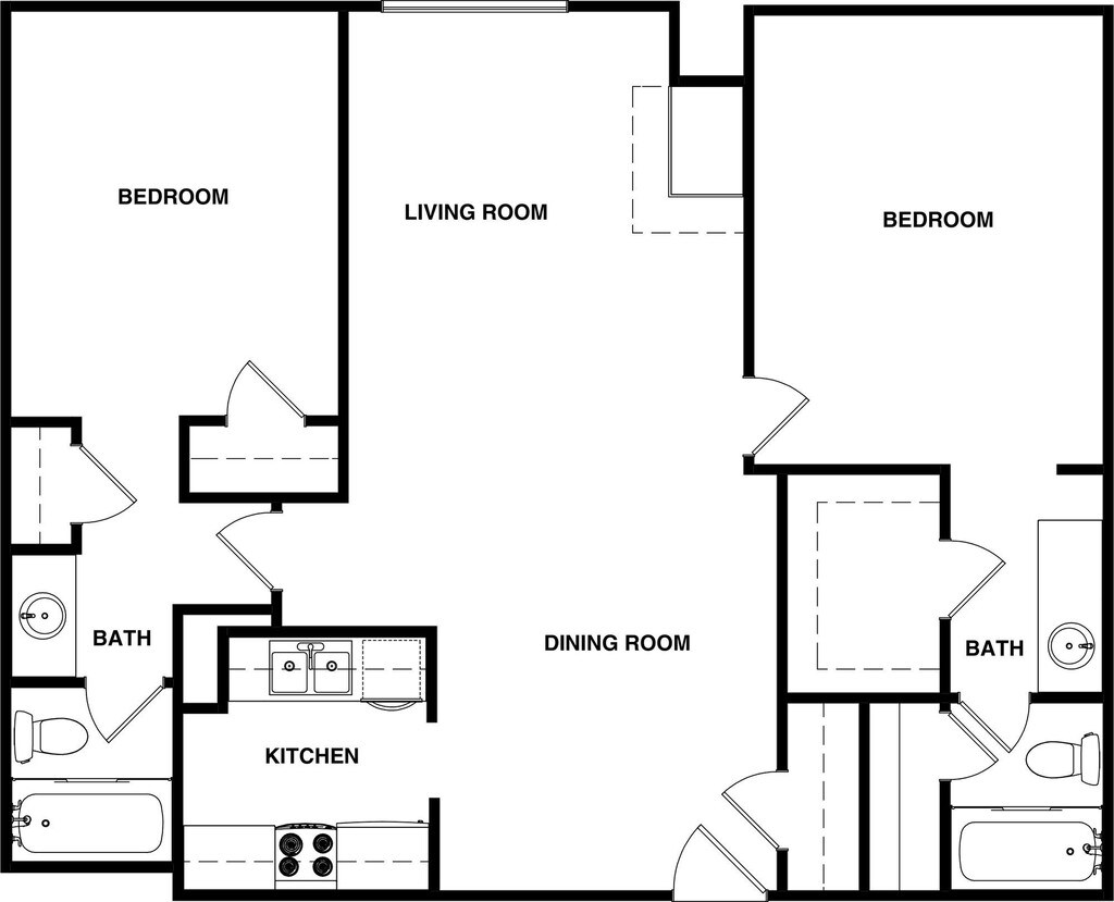 2 Beds, 2 baths - Floorplan 1 2 Beds, 2 baths