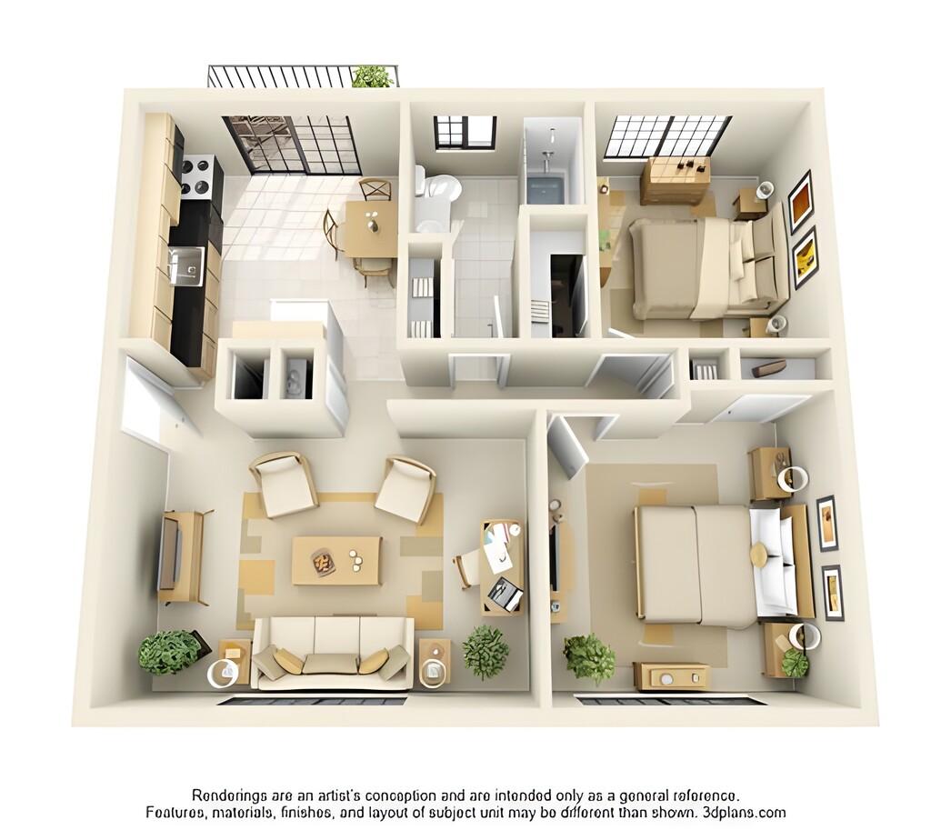 2 Beds, 1 Bath, 774 sq ftModel Gallery