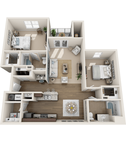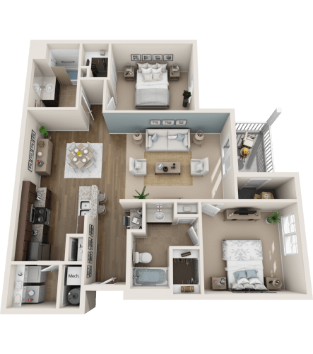 2 Beds, 2 Baths, 1251 sq ftAvailable Nov 21Largest 2 BedroomThis is the largest 2 Bedroom at this PropertyModel Gallery
