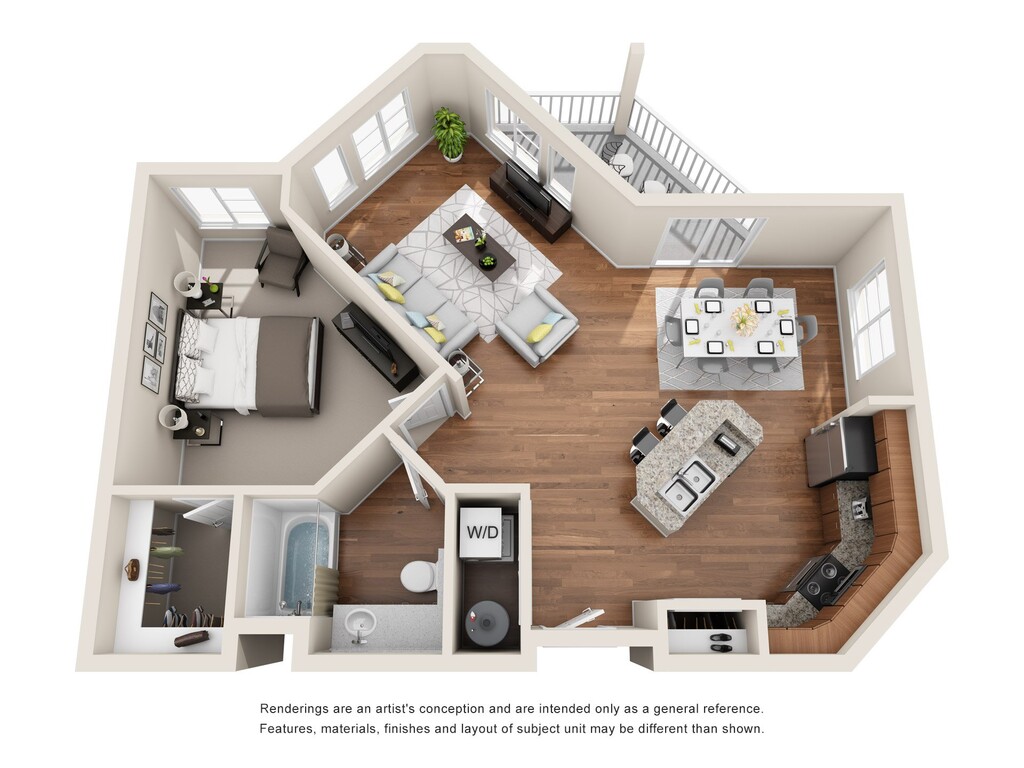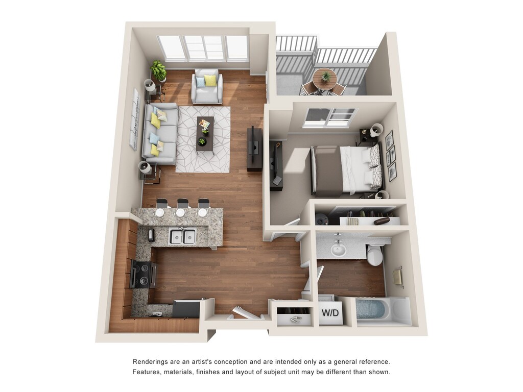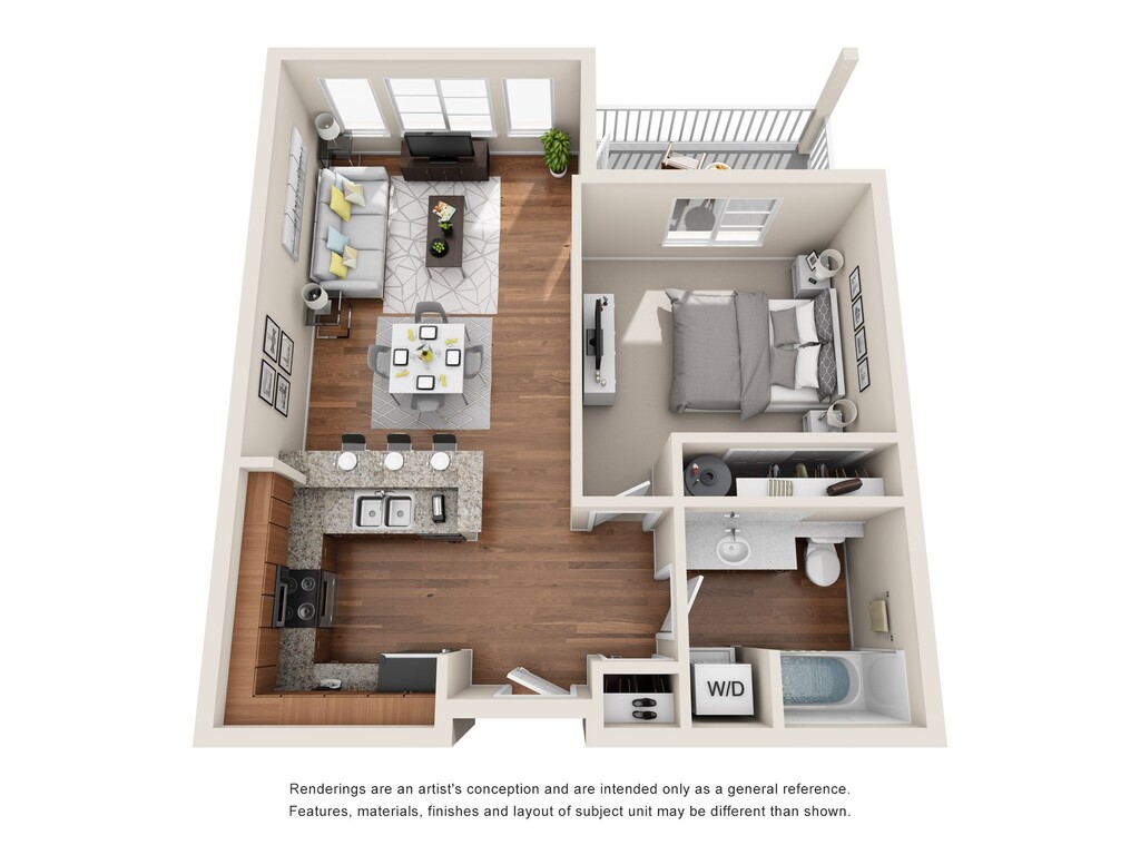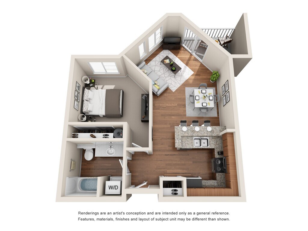 1 Bed, 1 Bath, 643 sq ftModel Gallery