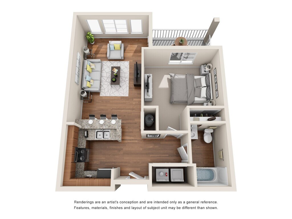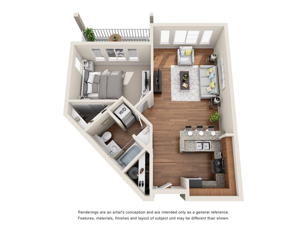 Apartment Model: Franklin FallsStudio, 1 Bath, 531 sq ftAvailable NowFloor plans are artist's rendering. All dimensions are approximate. Actual product and specifications may vary in dimension or detail. Not all features are available in every rental home. Prices and availability are subject to change. Base rent is based on monthly frequency. Additional fees may apply, such as but not limited to package delivery, trash, water, amenities, etc. Deposits vary. Please see a representative for details.