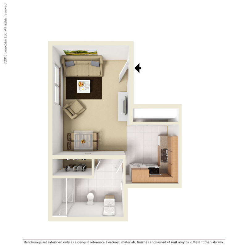 Studio, 1 Bath, 475 sq ftModel Gallery