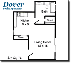 Apartment Model: Dover - StudioStudio, 1 Bath, 475 sq ftUnavailableDover - Studio - Floorplan 1 Dover - Studio - Floorplan 2 Dover - Studio - Floorplan 3 Dover - Studio - Floorplan 4 Dover - Studio - Floorplan 5 Dover - Studio - Floorplan 6 1 Bedroom