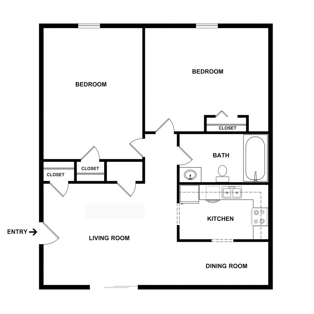 Two Bedroom, One Bathroom - Floorplan 2 ![]()