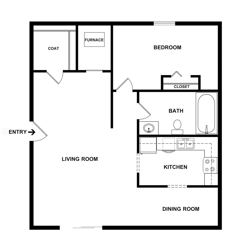 One Bedroom, One Bathroom - Floorplan 1 ![]()