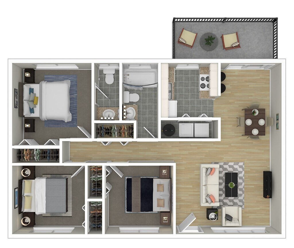 3 Beds, 2 Baths, 895 sq ftModel Gallery