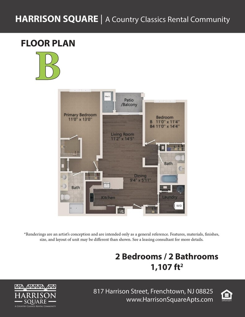 Price Availability Date Unit Sq Ft From $2,070 Call for Availability B 1107-1143 sq ft Model Amenities and Features