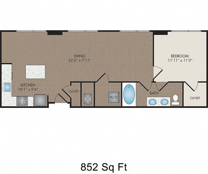 1 Bed, 1 Bath, 840 sq ftPlus FeesAvailable NowLargest 1 BedroomThis is the largest 1 Bedroom at this PropertyModel Gallery