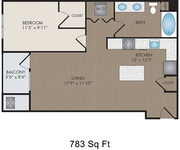 1 Bed, 1 Bath, 840 sq ftAvailable NowLargest 1 BedroomThis is the largest 1 Bedroom at this PropertyModel Gallery
