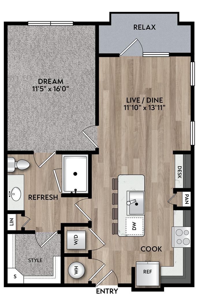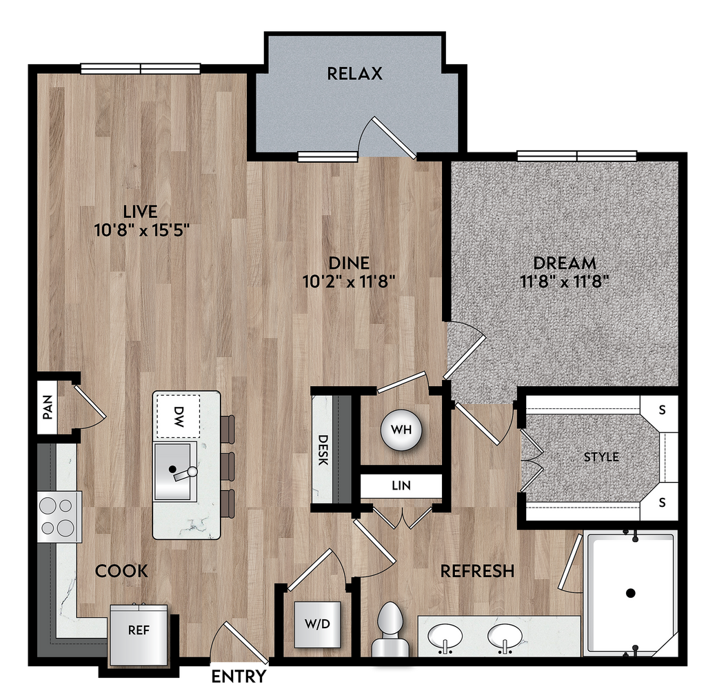 1 Bed, 1 Bath, 675-704 sq ftAvailable Jun 9Model Gallery