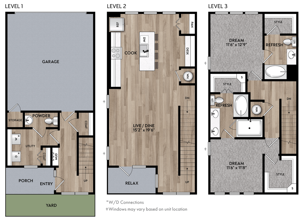 Availability Date Unit Sq Ft Deposit Call for Availability TH3 1820-1835 sq ft $350 Model Amenities and Features
