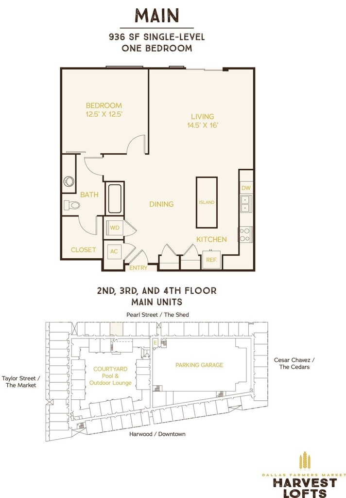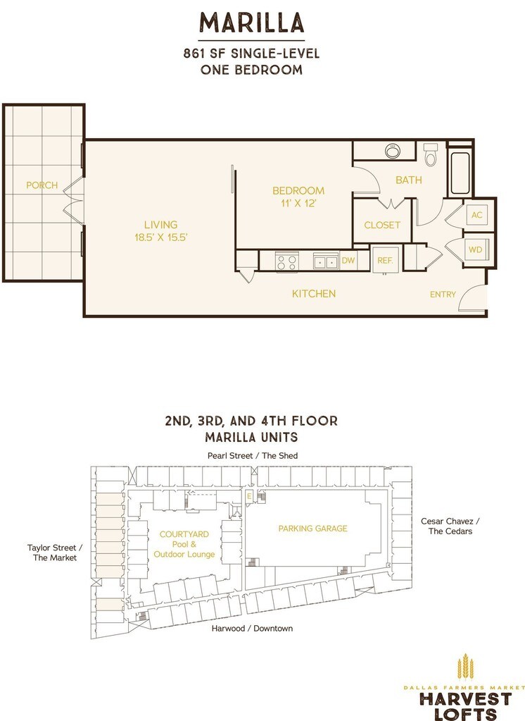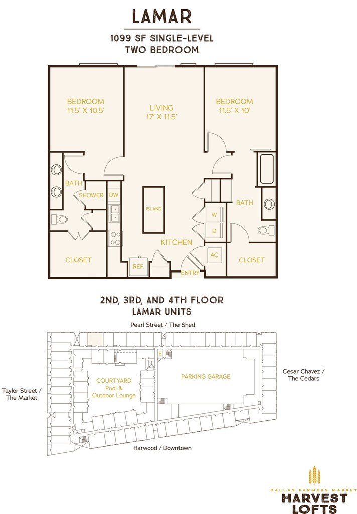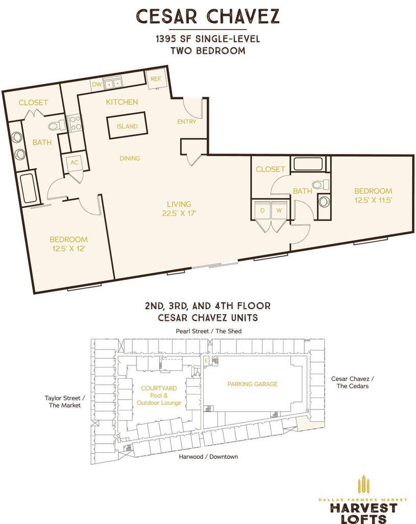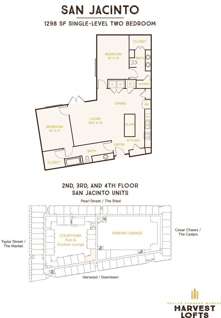 WELCOME HOME TO THE DALLAS FARMERS MARKET Harvest Lofts is at the center of the vibrant Dallas Farmers Market neighborhood, a walkable, friendly place to come home to where more than 200 local businesses make living delicious, fun and easy. Whether you work from home, downtown, uptown or across town, you’ll enjoy this convenient point of access that’s a community all its own. As a resident of Harvest lofts, you’ll appreciate Living Local Perks at the Dallas Farmers Market, a special reward program that varies by merchant to thank our residents for shopping local. On the street level of Harvest Lofts, you’ll enjoy the convenience of the Harvest Shops, a fun, curated ensemble of restaurants and stores including the Eden Hill Vineyard tasting room, Ka-Tip Thai Street Food, K.A. Boutique women’s clothing, Nikki Smith Designs modern jewelry, Simply Irresistible, a home decor and apparel legend, and Whiski Designs, Texas-inspired hand-lettered graphics.