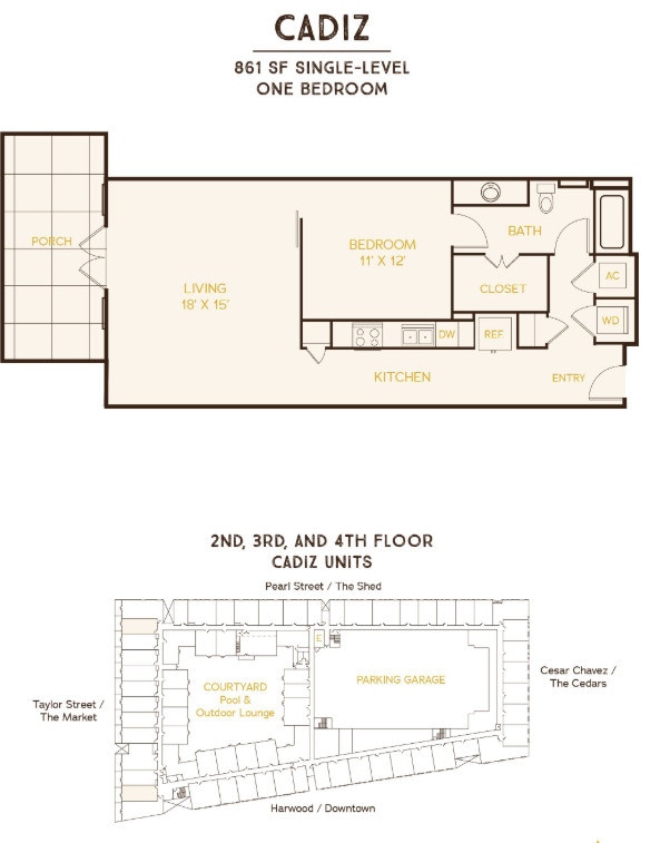 Wood (A2) - Floorplan 7 Apartment Unit: 467Apartment Model: Wood (A2)$1,9231 Bedroom, 1 Bath, 795 sq ftAvailable December 23, 2025Cadiz (A3)
