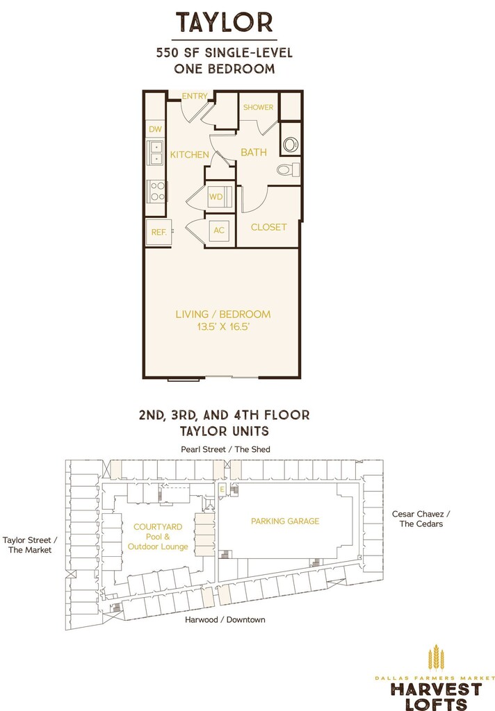 Taylor (Mixed Income Housing) - Floorplan 2 Apartment Unit: 274Apartment Model: Taylor (Mixed Income Housing)$1,2691 Bedroom, 1 Bath, 550 sq ftAvailable December 9, 2025Harwood (A1A)