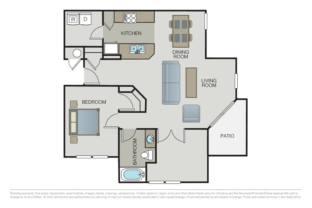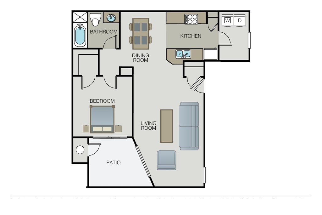 1 Bed, 1 Bath - Floorplan 1 ![]()