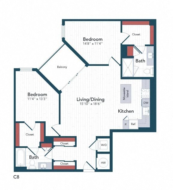 B1 - Floorplan 1 Apartment Unit: 0678Apartment Model: B1$2,7702 Bedroom, 1 Bath, 885 sq ftAvailable NowFloorplan C3