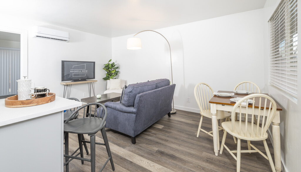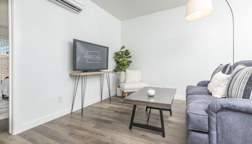 Live in a brand-new spacious duplex apartment that reflects your modern, urban lifestyle. These two-story units offer one bedroom and one & a half baths. Each unit has nine-foot ceilings, private side yards (great for BBQing), a small office area, a laundry-storage room and a walk-in closet. There are windows in virtually every room creating sun drenched spaces. In addition to the duplex units, there will be eight one-bedroom apartments, with the four ground floor units each having a large private yard. Onsite parking is available for residents and all residential areas are gated with key code access. The property features modern and urban finishes along with stainless steel appliances, stone counter-tops and polished concrete & vinyl wood flooring, steel staircase to the second floor, tiled showers as well as smart outlets throughout the unit. Haskell Row offers walk-ability to all that Midtown has to offer. Have your morning coffee at Coffeebar Roastery right next door! **Prices are subject to change without notice, please call prior to submitting an application.