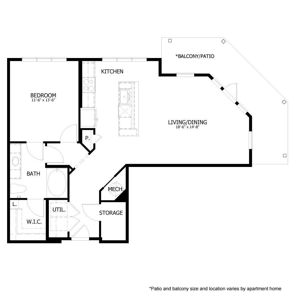 1 Bed, 1 Bath, 597 sq ftAvailable NowModel Gallery