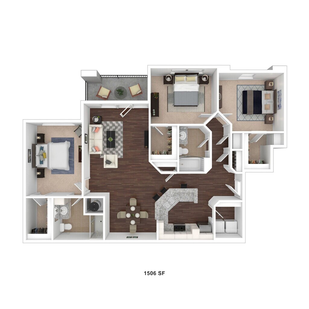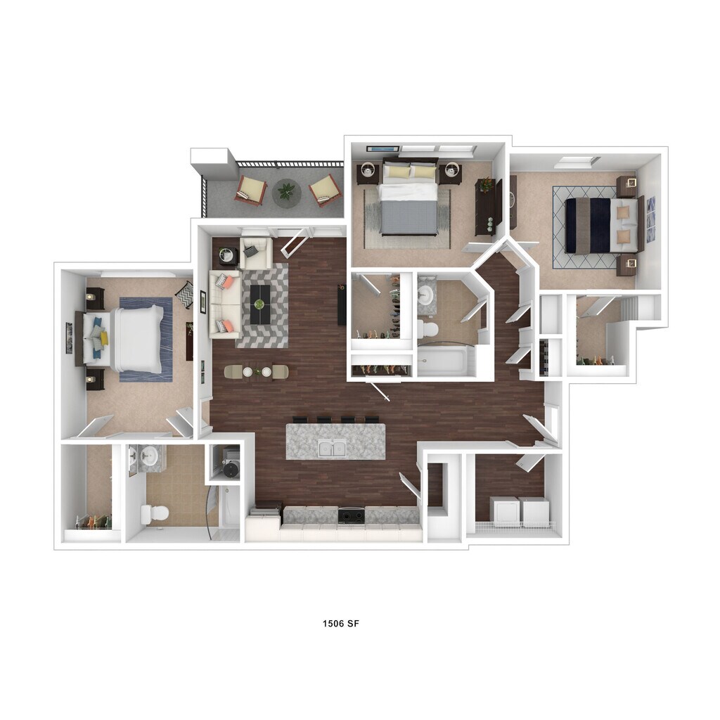 1 Bed, 1 Bath, 849 sq ftModel Gallery