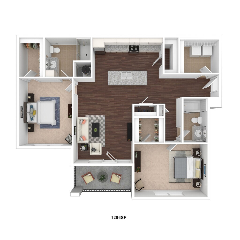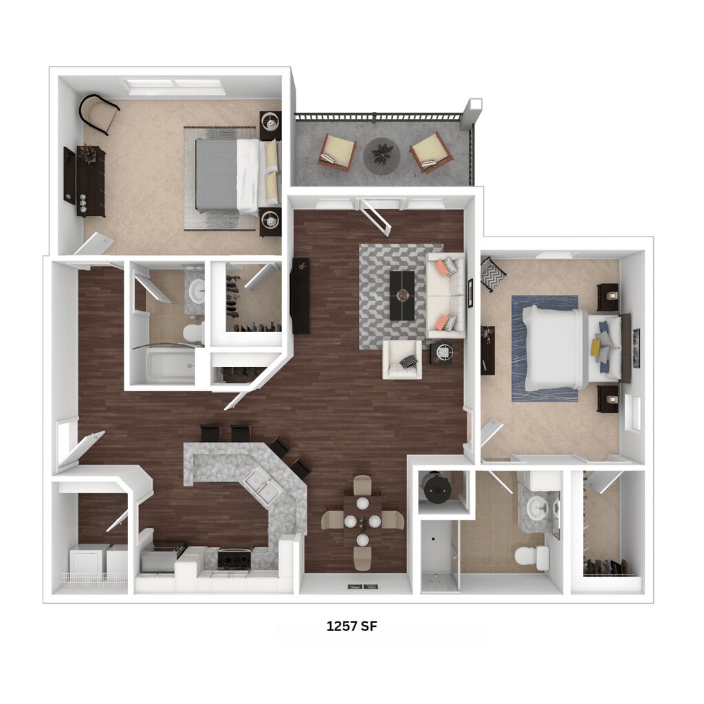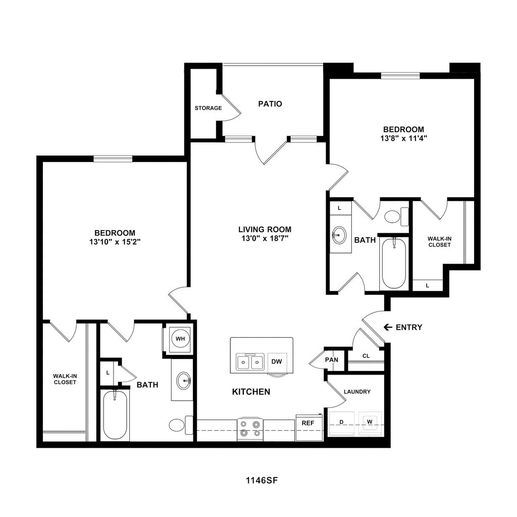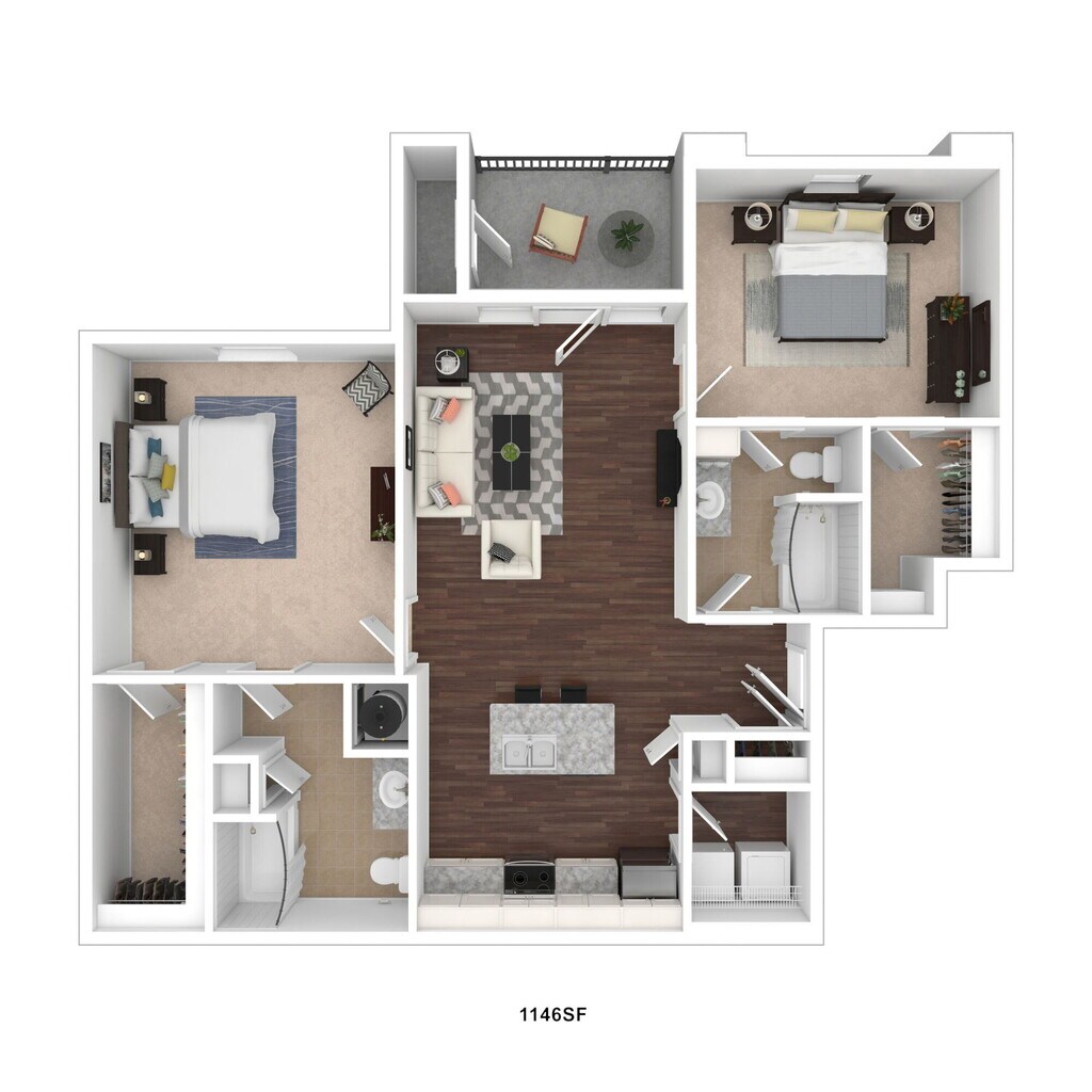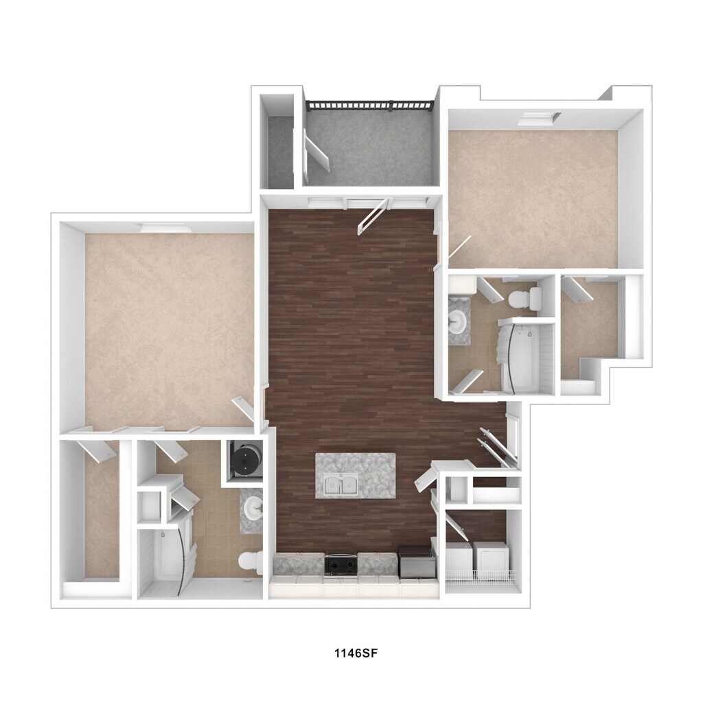 2 Beds, 2 Baths, 1146-1153 sq ftAvailable NowCheapest 2 BedroomThis is the cheapest 2 Bedroom at this PropertyModel Gallery