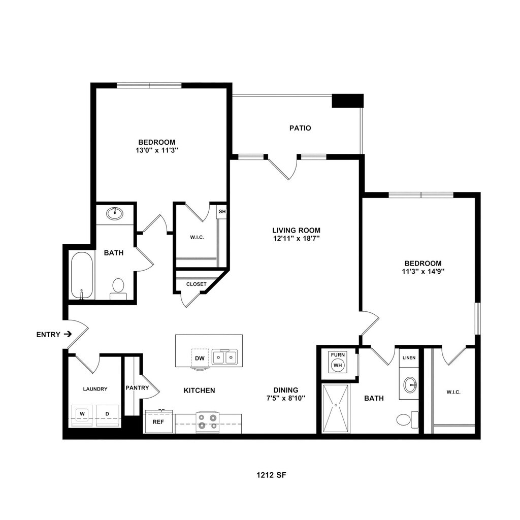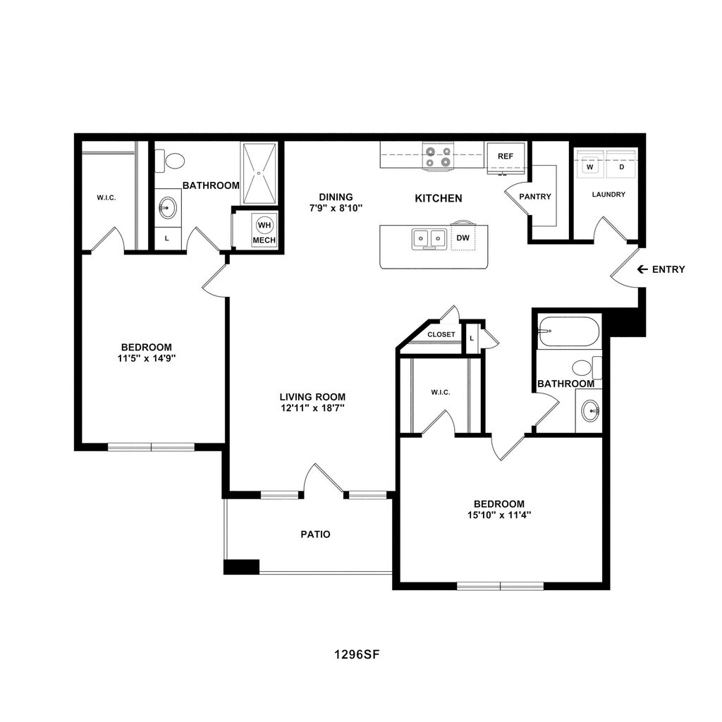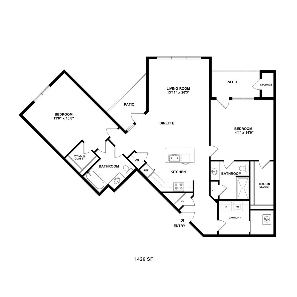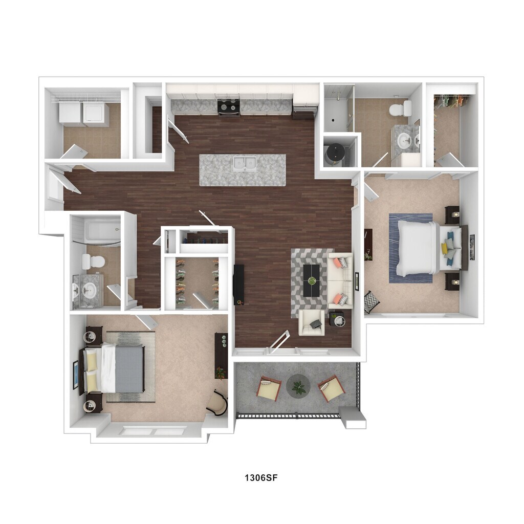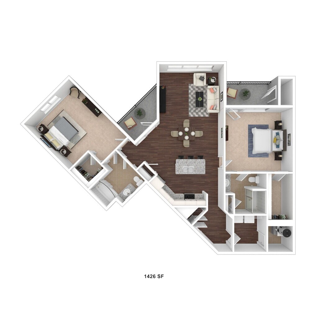 2 Beds, 2 Baths, 1146-1153 sq ftAvailable NowCheapest 2 BedroomThis is the cheapest 2 Bedroom at this PropertyModel Gallery