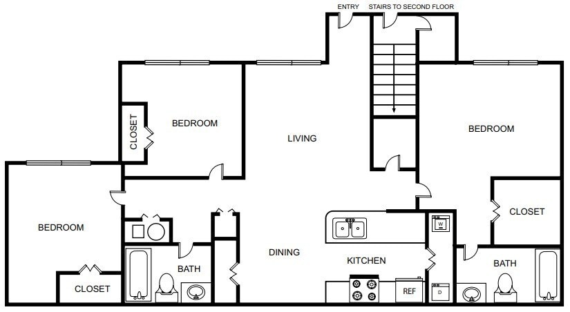 Three Bedroom Two Bathroom MKT - Floorplan 1 4 Bedrooms