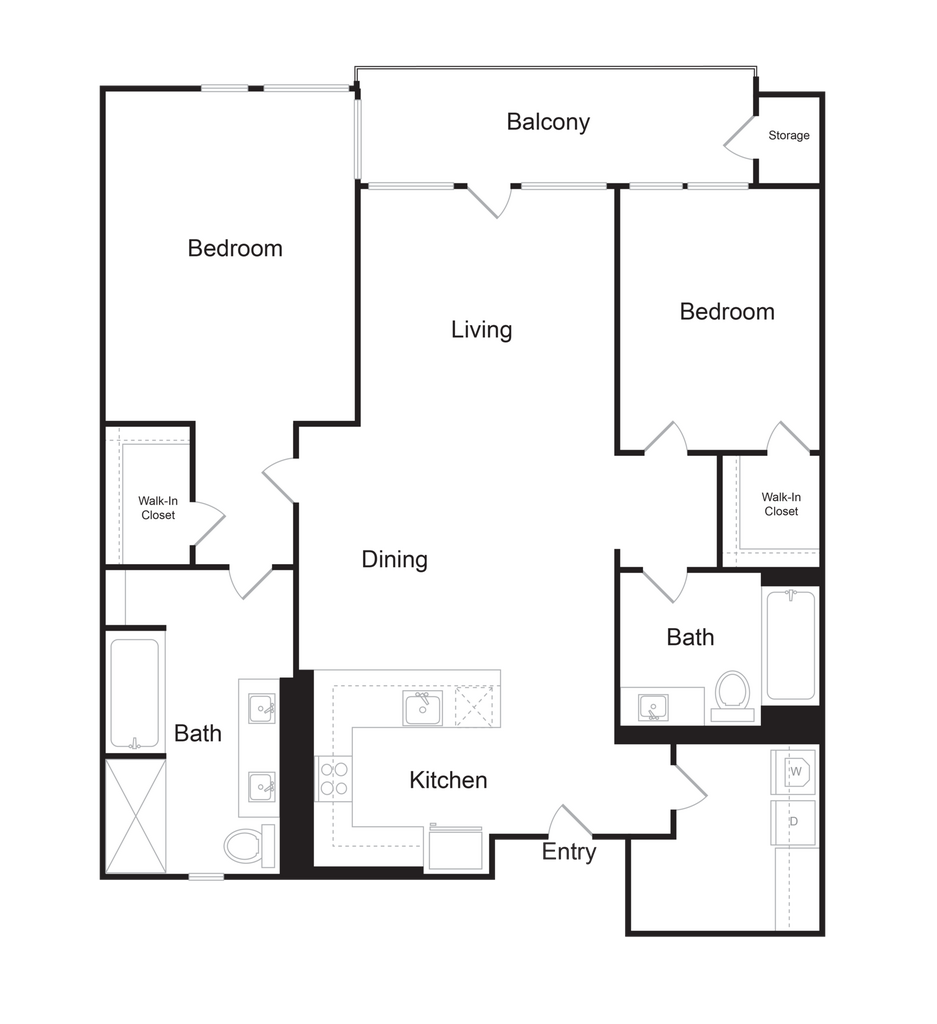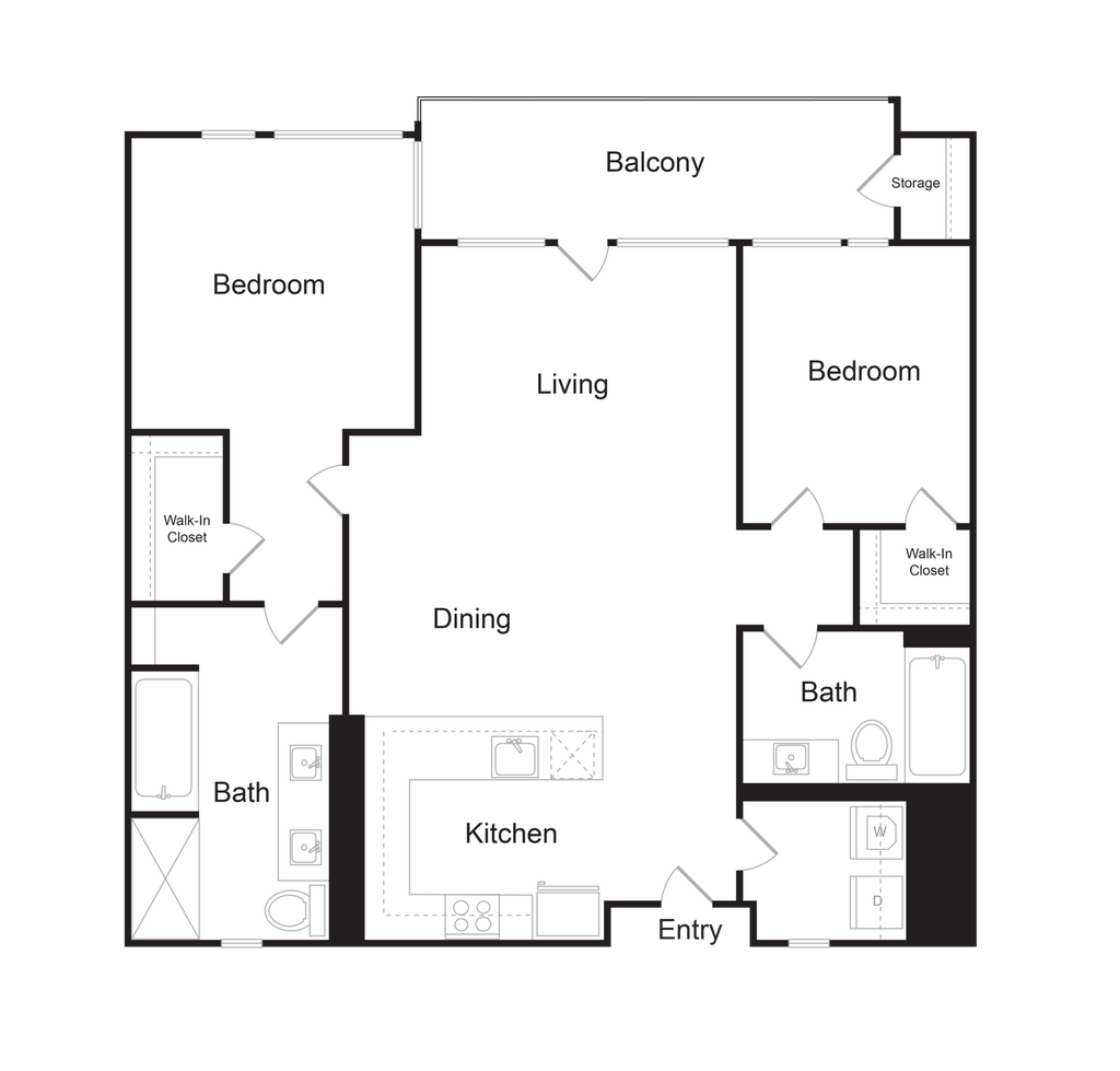 2x2Kc - Floorplan Apartment Unit: 204Apartment Model: 2x2Kc$5,2152 Bedroom, 2 Bath, 1364 sq ftAvailable May 3, 20262x2Gc