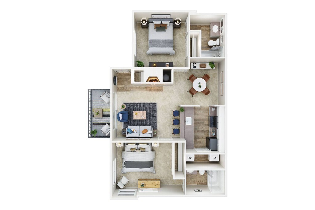 2 Beds, 2 Baths, 1085 sq ftAvailable NowLargest 2 BedroomThis is the largest 2 Bedroom at this PropertyModel Gallery