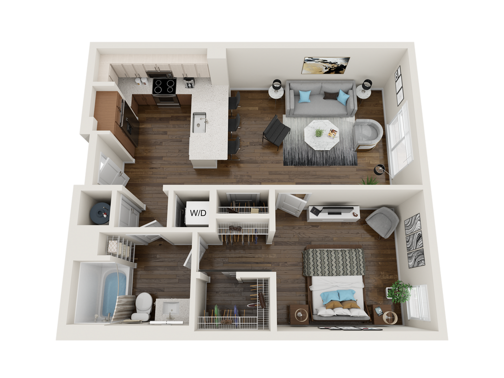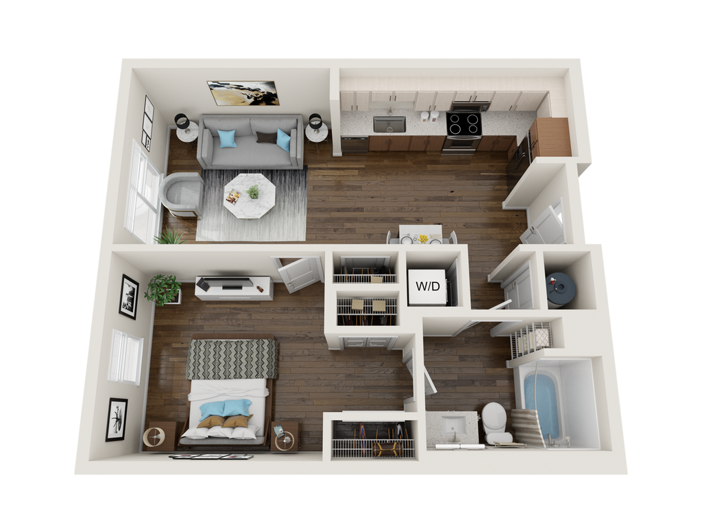 1 Bed, 1 Bath, 605 sq ftAvailable NowModel Gallery