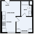 1 Bed, 1 Bath, 323-369 sq ftAvailable Mar 15Model Gallery