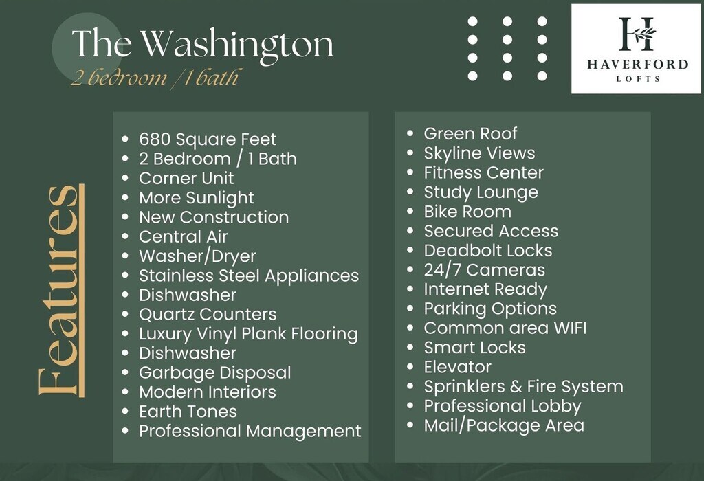 2 Bedrooms at Haverford Lofts currently start from $1,695. Call today for more info!