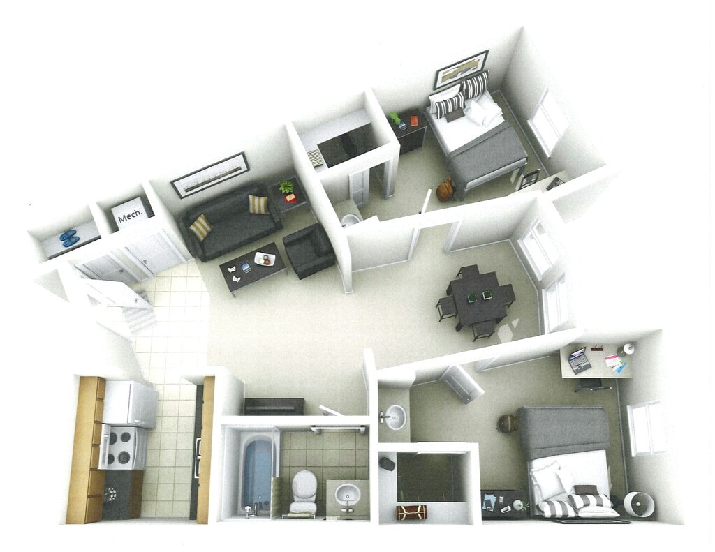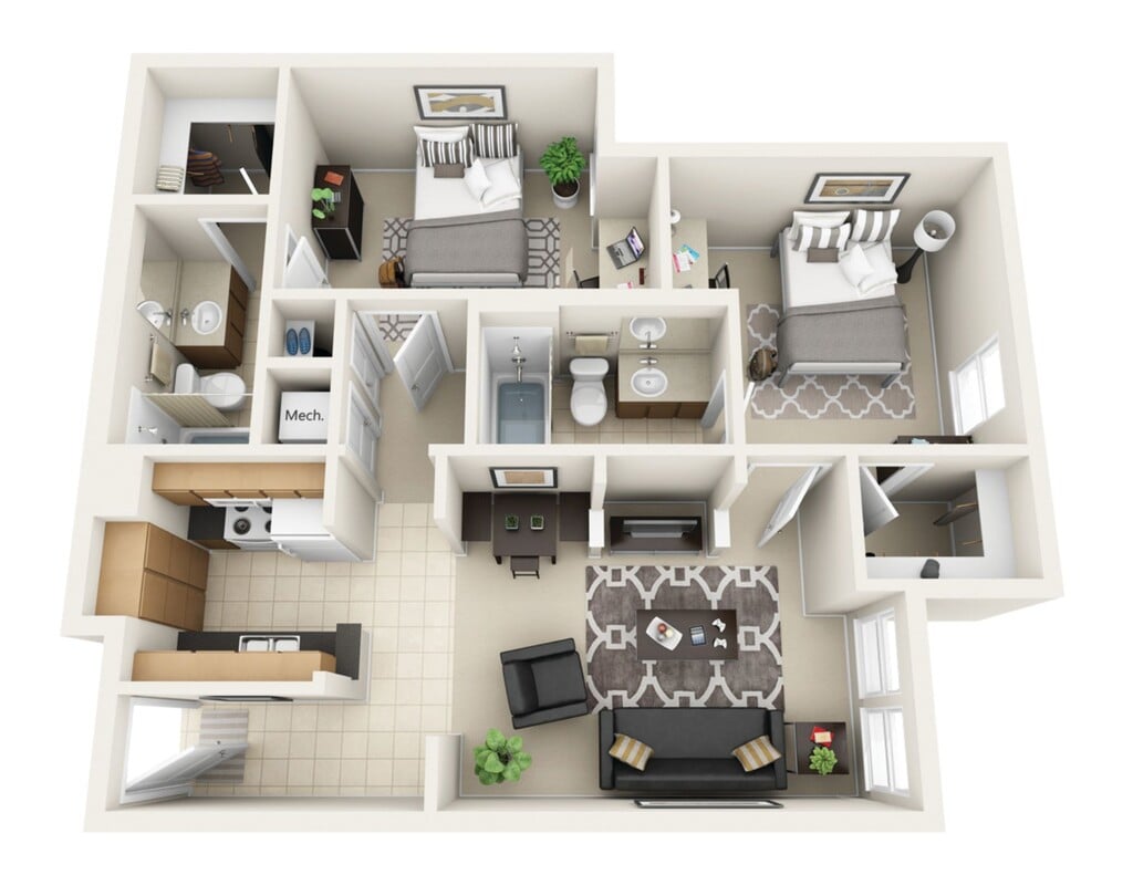 2 Bedroom-1 Bathroom - Floorplan 1 2 Bedroom-2 Bathroom Classic