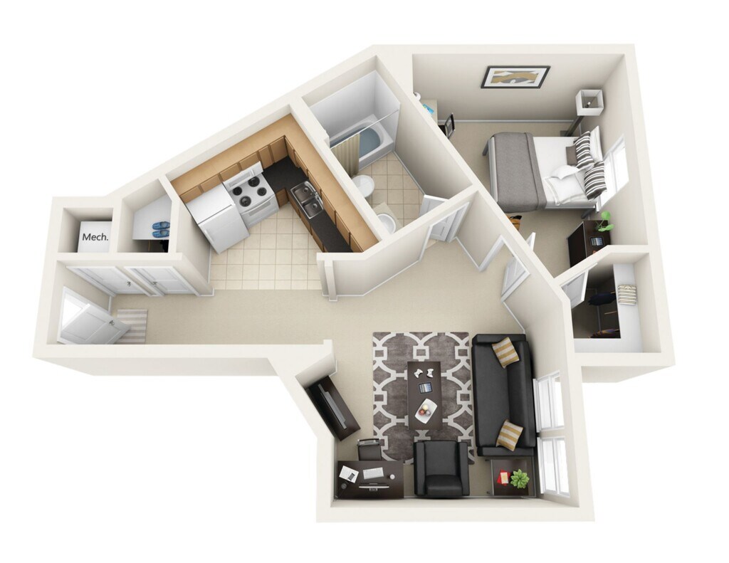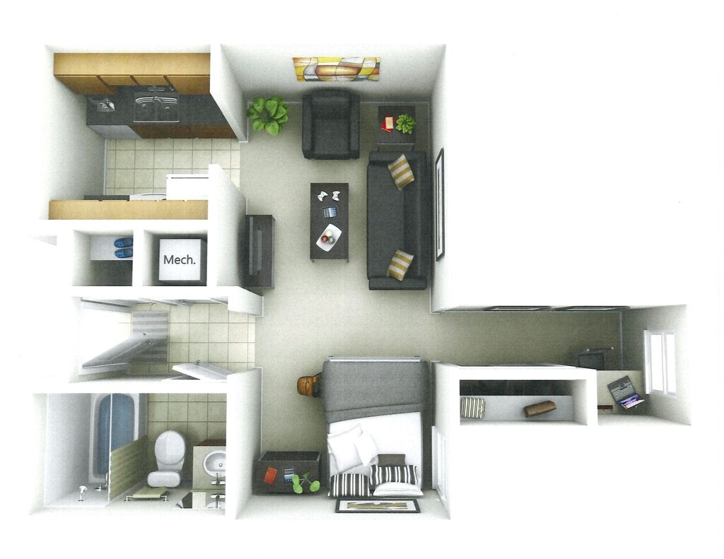 1 Bedroom-1 Bathroom Classic - Floorplan 1 1 Bedroom-1 Bathroom Delux