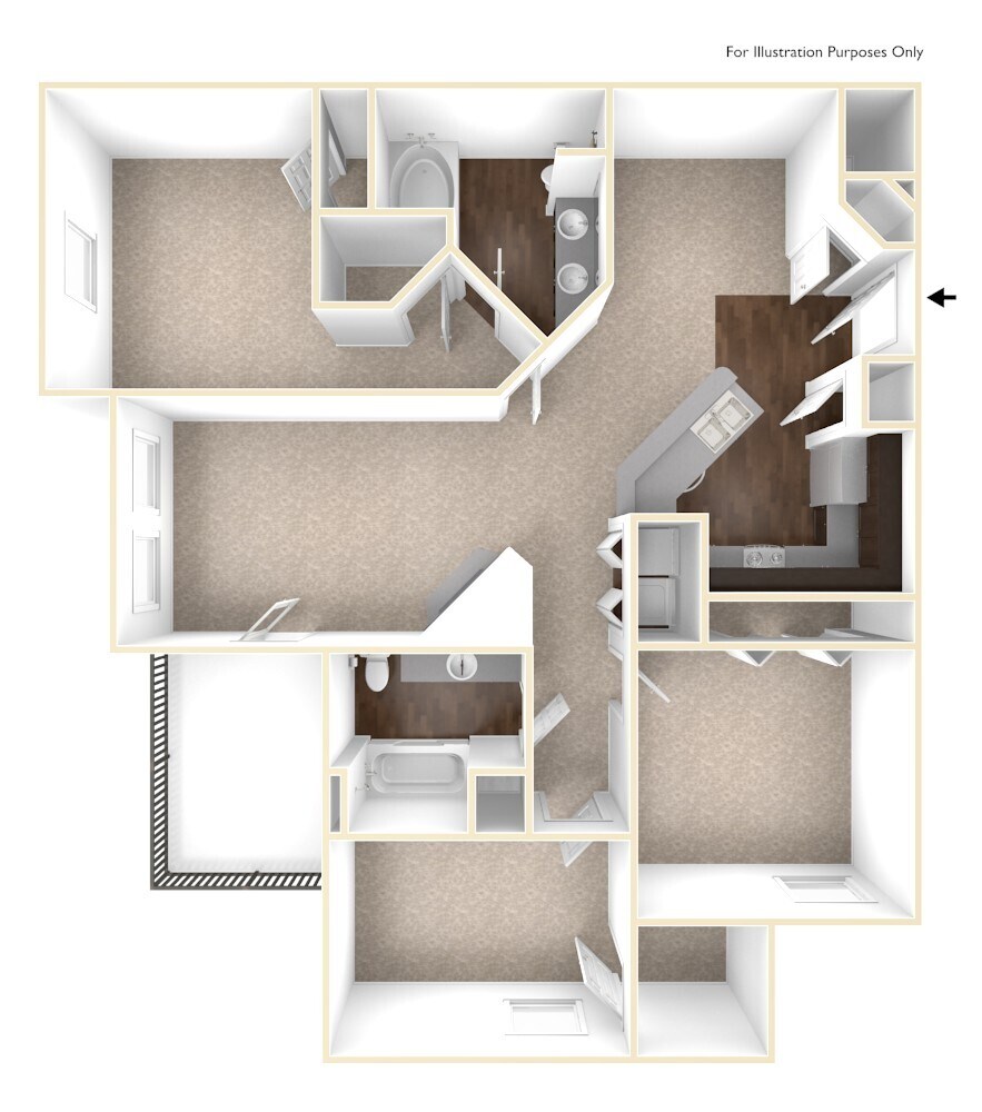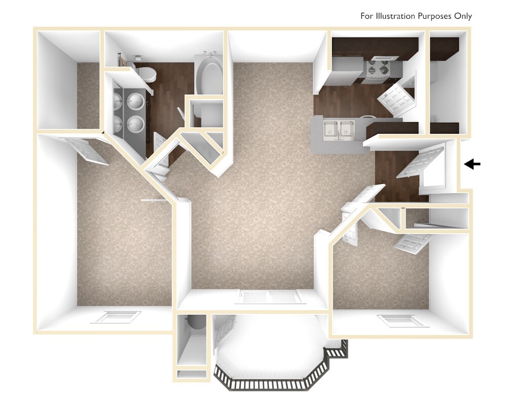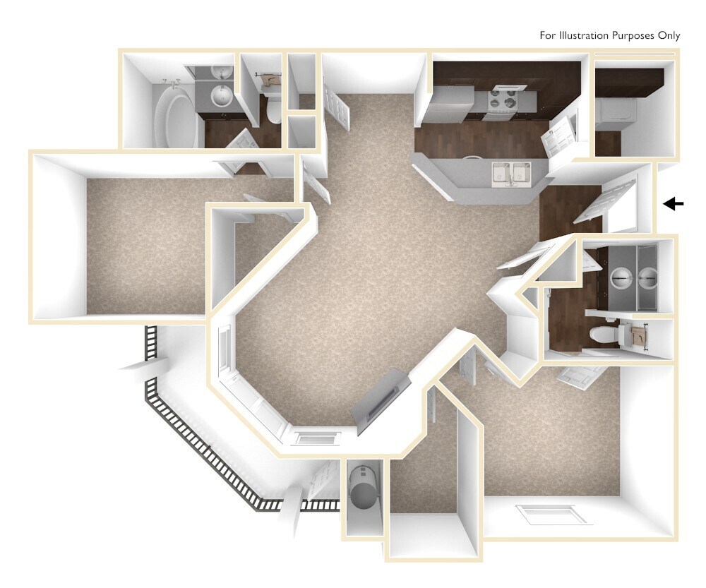 2 Beds, 2 Baths, 1240 sq ftAvailable NowLargest 2 BedroomThis is the largest 2 Bedroom at this PropertyModel Gallery
