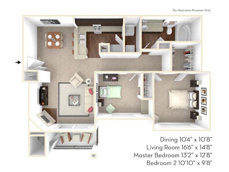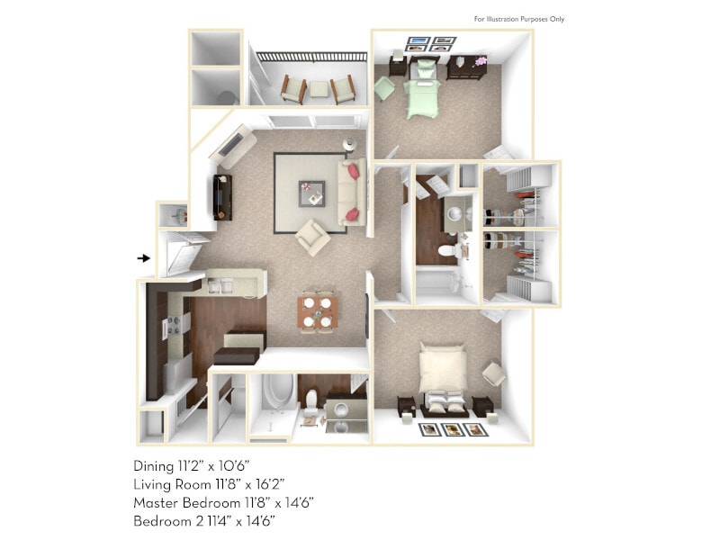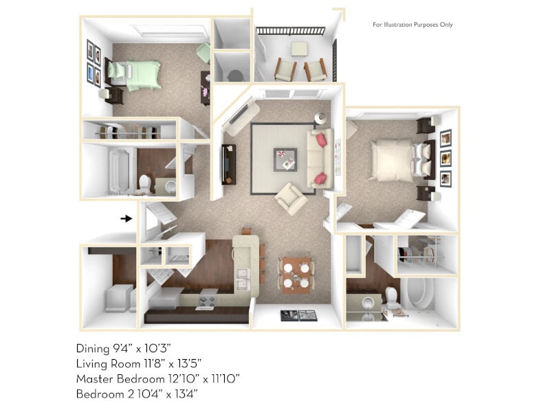 2 Beds, 2 Baths, 1033 sq ftAvailable NowModel Gallery