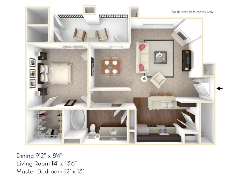 1 Bed, 1 Bath, 916 sq ftLargest 1 BedroomThis is the largest 1 Bedroom at this PropertyModel Gallery