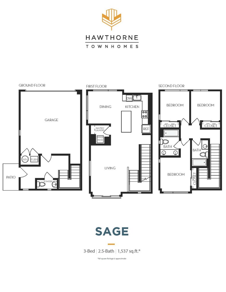 Hawthorne Townhomes offers 2 to 3 Bedroom apartments starting from $1,850 and having 1,121–1,537 sq ft. Here is the current pricing and availability: