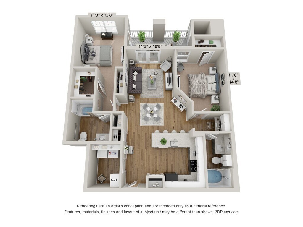 2 Beds, 2 Baths, 1092-1104 sq ftAvailable NowCheapest 2 BedroomThis is the cheapest 2 Bedroom at this PropertyModel Gallery