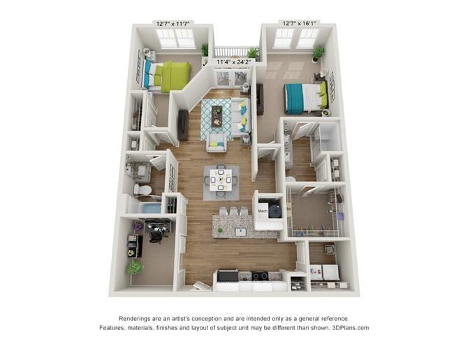 - Spacious Bedrooms with Walk-in Closets