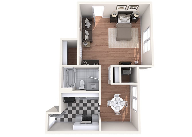 Studio, 1 Bath, 500 sq ftModel Gallery