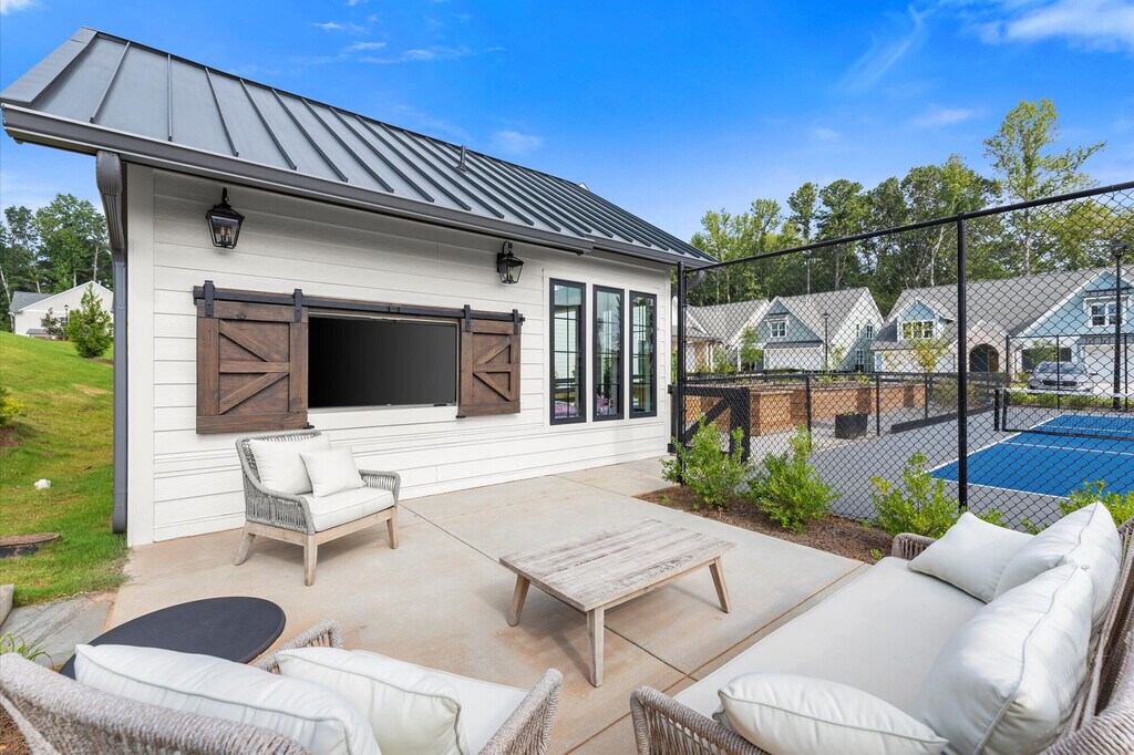 NOW OPEN! Hayloft Big Creek is the newest 55+ community conveniently located in Alpharetta, close to some of the best dining and shopping centers in Forsyth County including Halcyon, Avalon, The Collection, Vickery Village, and more. Hayloft Big Creek will offers a selection of 13 carefully crafted floor plans, featuring 1-, 2-, or 3-bedroom layouts, several of which include 1- or 2-car garages. Perfectly suited for the active adult seeking a mortgage-free, maintenance-free life, this tranquil neighborhood offers a delightful community atmosphere for those who appreciate the simplicity and joy of a lock-and-leave lifestyle. Residents can enjoy variety of amenities, including a spacious clubhouse and fitness center, an event lawn with a pickleball court, cornhole area, putting green, as well as an outdoor TV pavilion area with a Green Egg & gas grill, resident gardens, a potting shed, and much more.
