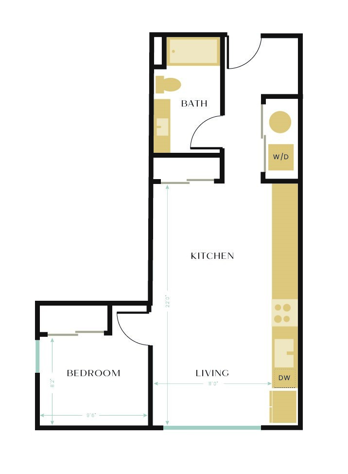 Studio (0BD/1BA) - Floorplan 3 1 Bedroom