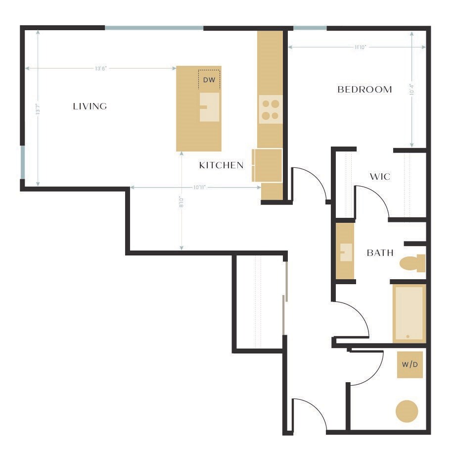 1 Bed, 1 Bath, 581 sq ftAvailable NowModel Gallery